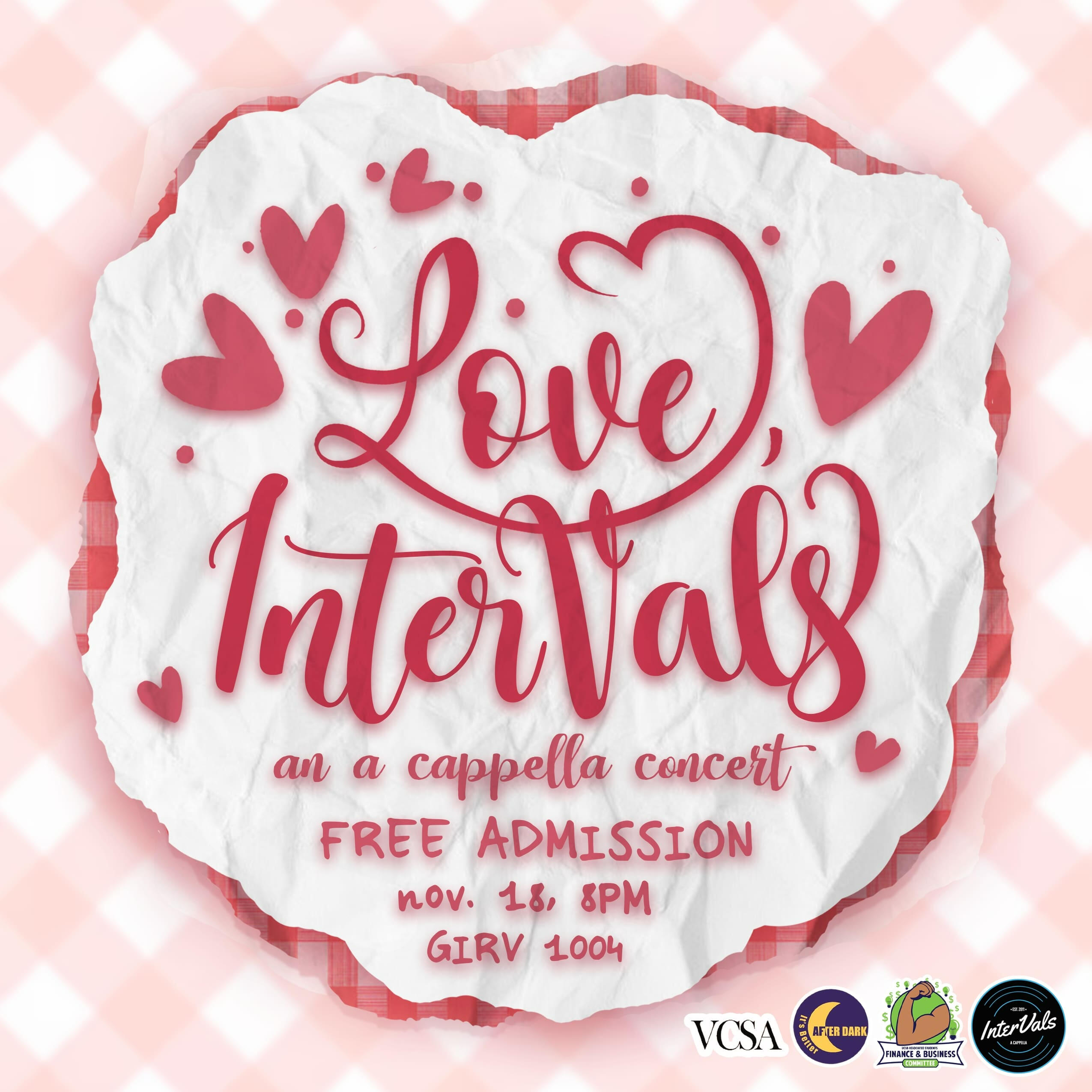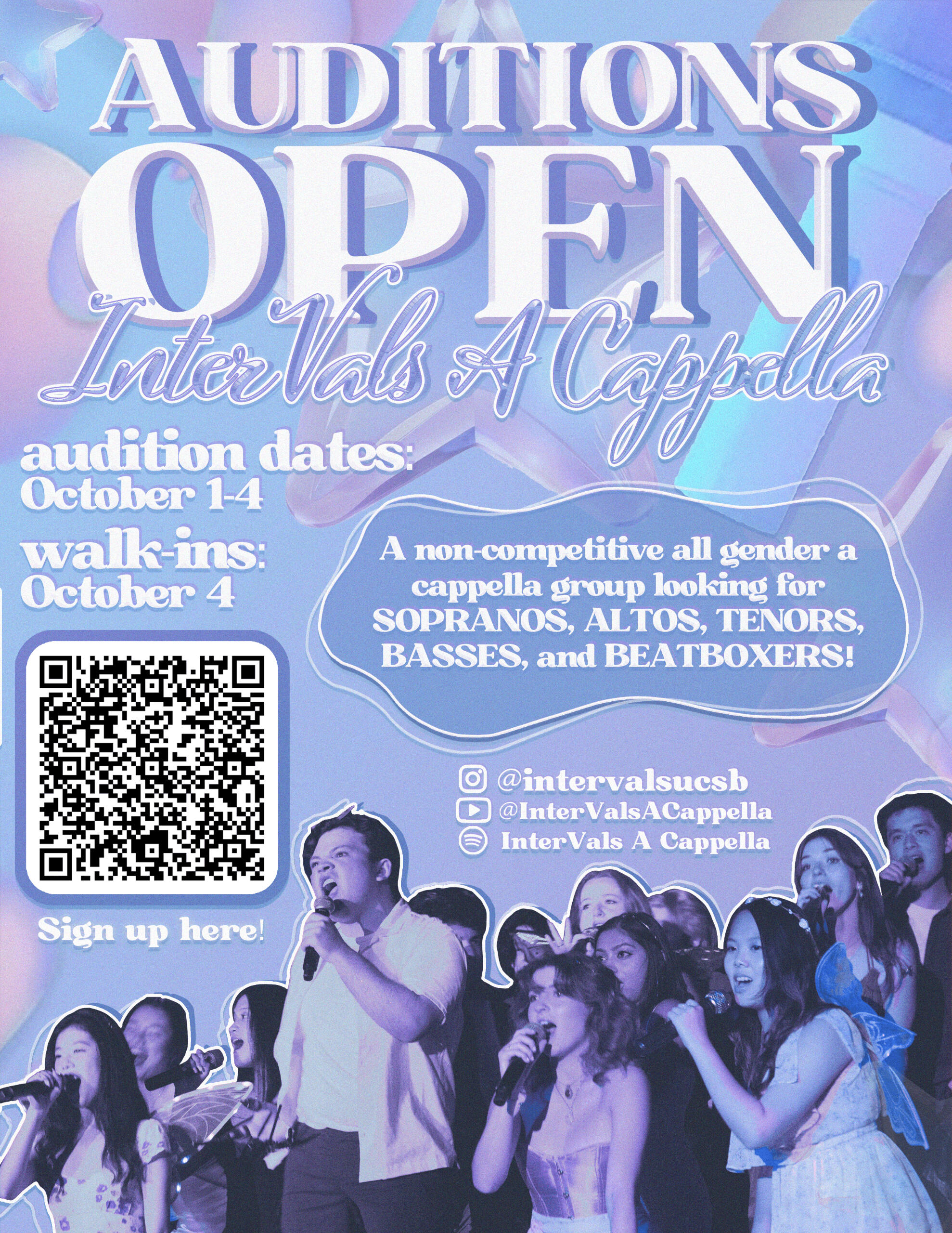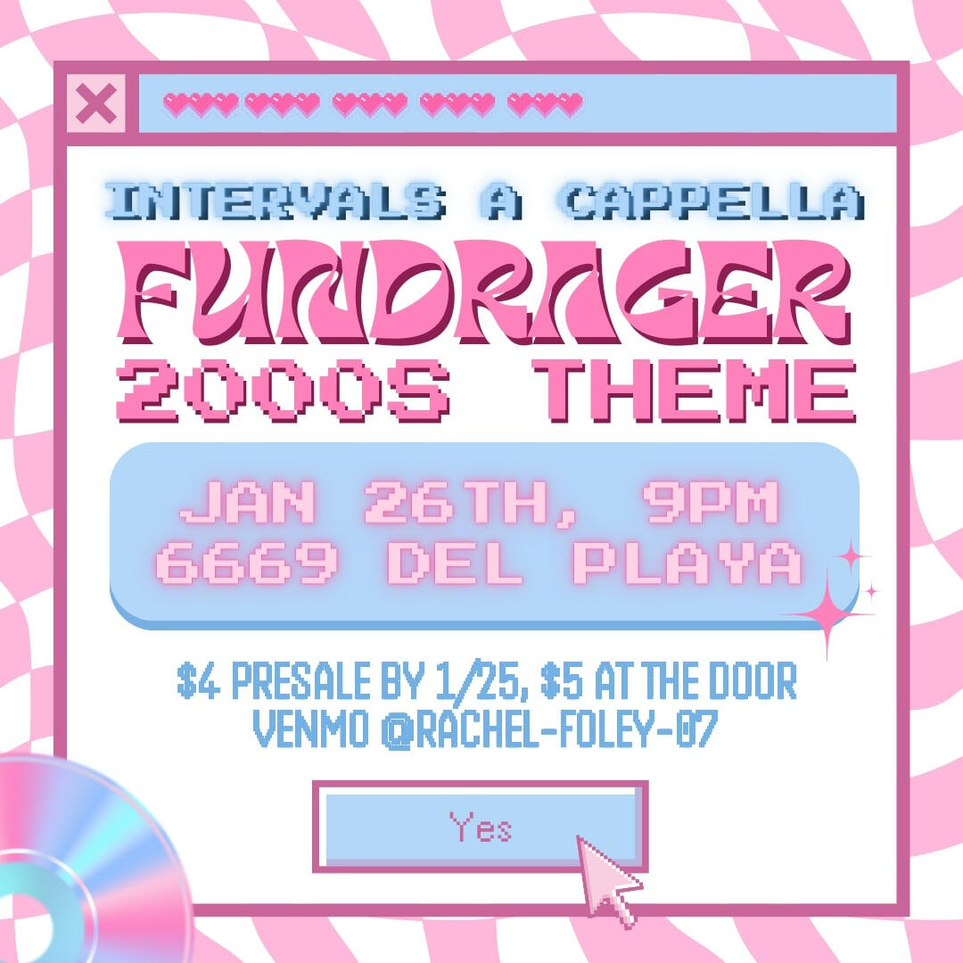 I have been a part of InterVals A Cappella, a non-competitive all-gender a cappella group at UCSB, since my first year (Fall 2023). I became the publicity chair in March of 2023.