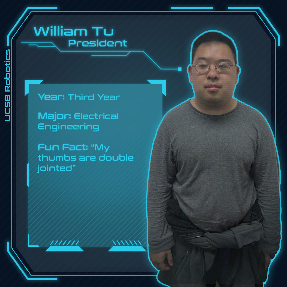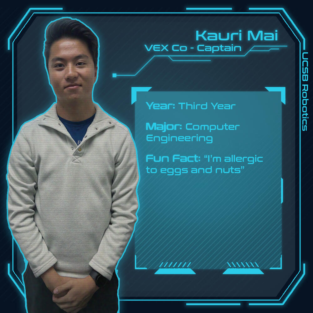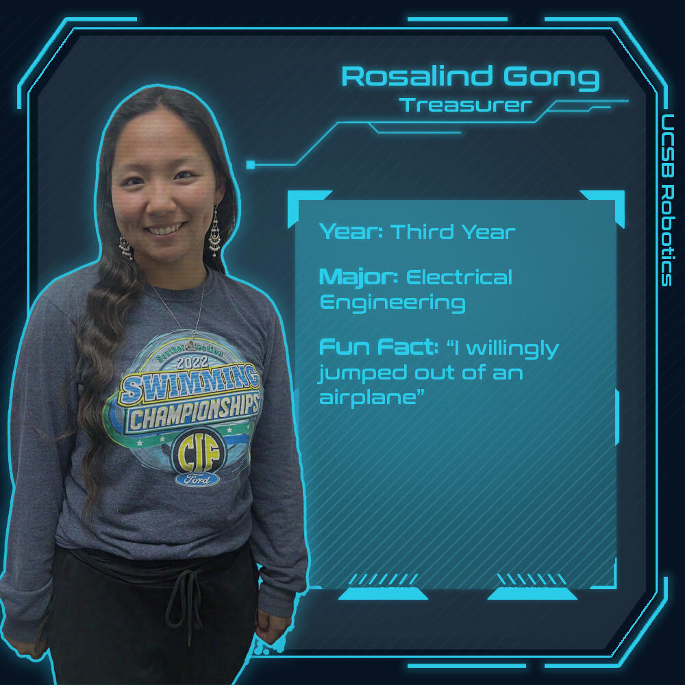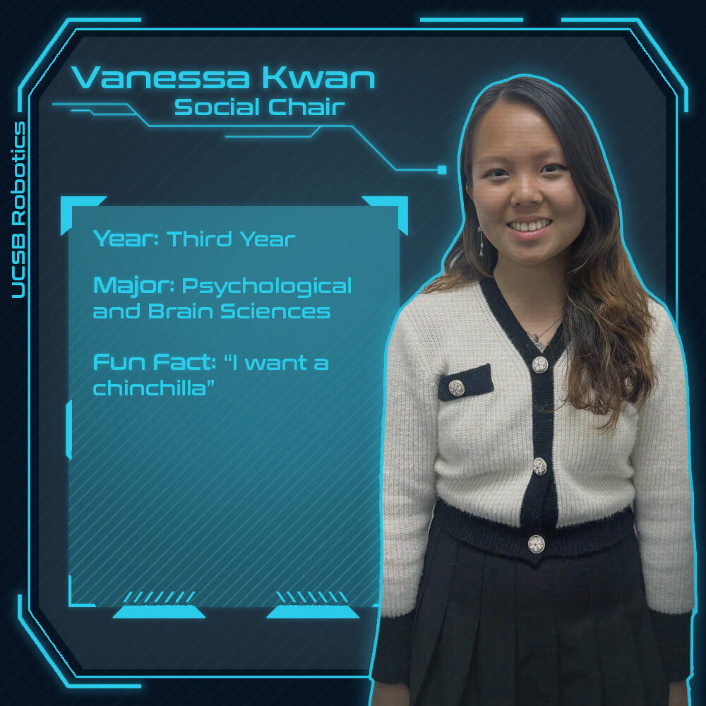 I have been a part of the Robotics Club at UCSB since March of 2024. I manage our Instagram (@ucsb_robotics)